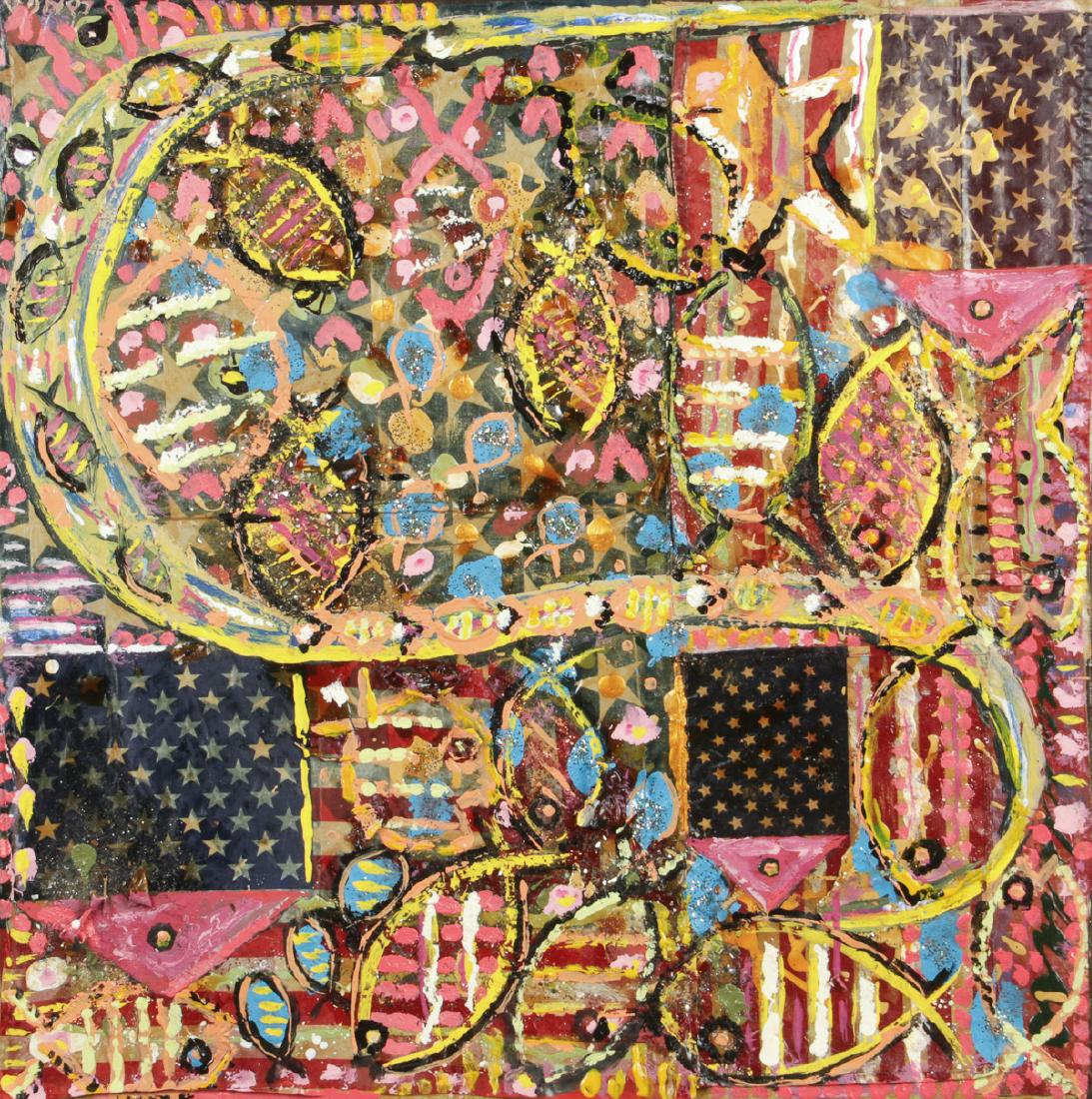 Folk Art Game Table with Checkerboard Top and Carved Bird Motif