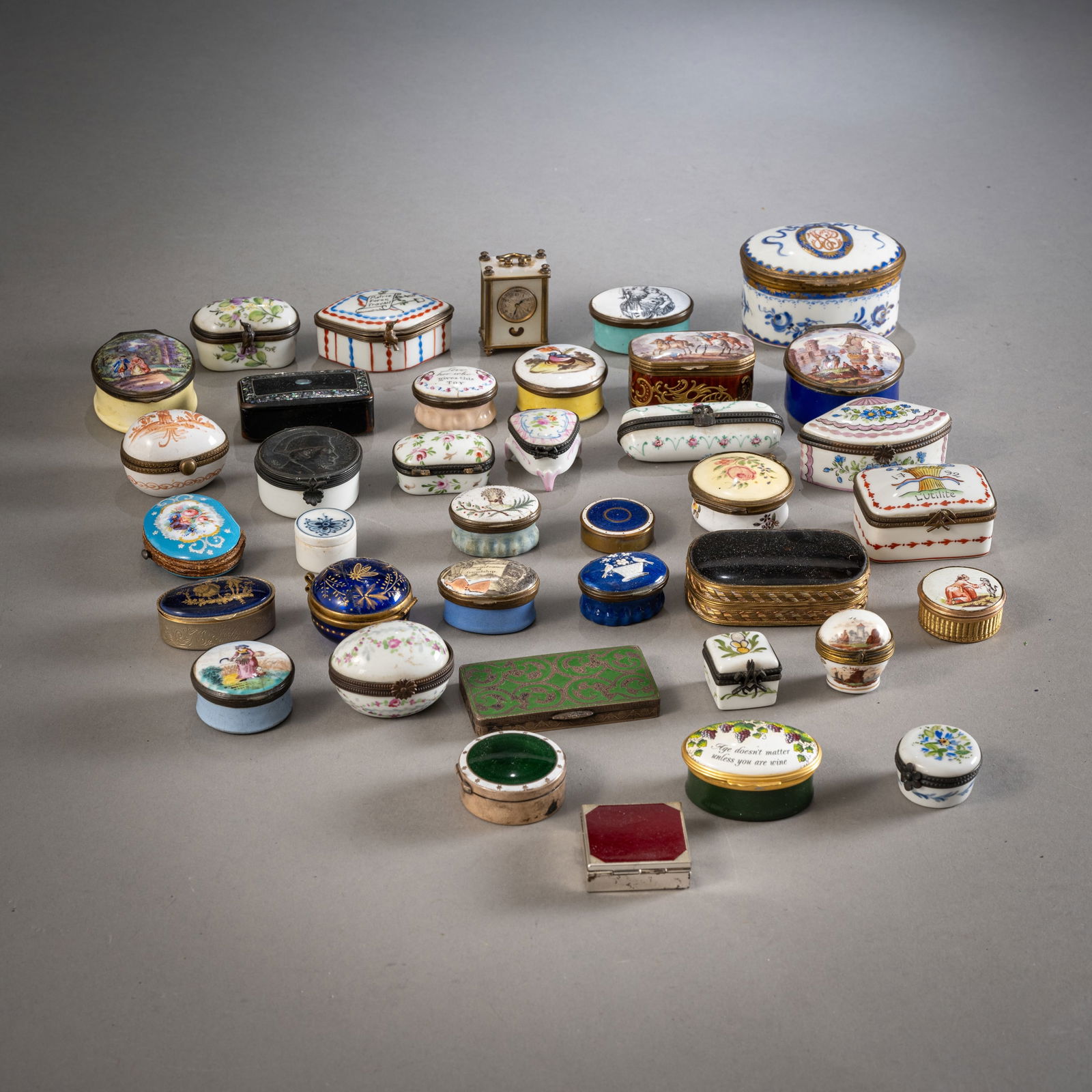 Lot of Mostly Asian Bowls, Plates, & Jars.18 hrs LeftLot of McCoy and Other Vintage Pottery.18 hrs LeftLot Antiques - Daguerreotype, Boxes, Pipe, Etc.18 hrs LeftLot of Hand Painted Porcelain Battersea & Dresser BoxesApr 06, 2026Vintage WWII Japanese Military Porcelain Sake Cups & BottlesMar 29, 2026LOT OF ABC PLATES, TOPS, PUZZLES AND BANK2 days LeftLarge Group Lot of Vintage Costume Jewelry - Pearls Beads etc.Mar 28, 2026VINTAGE PORCELAIN AND CERAMIC MINIATURE DOLLHOUSE TEA SET LOT INCL. LIMOGES17 hrs LeftA Group of Fourteen Chinese Canton Enamel Articles 18th-19th Century4 days LeftVintage Compacts and Trinket BoxesMar 29, 2026Costume Jewellery: Brooches, circa 100 pieces. Silver and gold plated metal.Apr 02, 2026A Collection of Vintage Decorative Porcelain and Glassware including a Japanese Export Tea Service5 days LeftAssortment of Nearly 100 Vintage Celluloid, Bakelite and Cardboard Jewelry BoxesMar 29, 2026A Group of Thirteen Southeast Asian Silver Articles 19th-20th century5 days LeftChinese Antique Export & Armorial Porcelain15 hrs LeftCURATED COLLECTION OF NELSON ROCKEFELLER AND EUROPEAN PORCELAIN BOXES, TRAYS INCL. RICHARD GINORI17 hrs Left