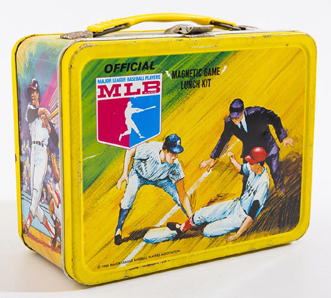 Sold1955 Baseball Lunchbox1955 Baseball Lunchbox Description: Awesome GSW (General Steel Ware) tin baseball lunchbox with matching thermos RARE Size:9X7x4 inches in great condition for the age Condition report: Upon request, WSee Sold Price