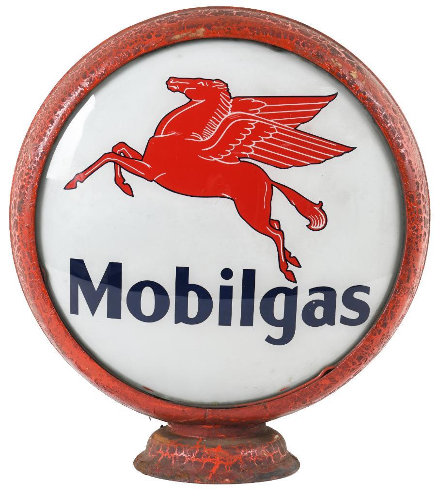 SoldComplete 16.5" Mobilgas w/ Pegasus Gas Pump Globe & Metal BodyCirca 1934-1951, Regular Grade Gasoline. Both 16.5" lenses have excellent color with minor surface wear, scratches and some very tiny areas of paint loss around the Pegasus. Both lenses also have someSee Sold Price