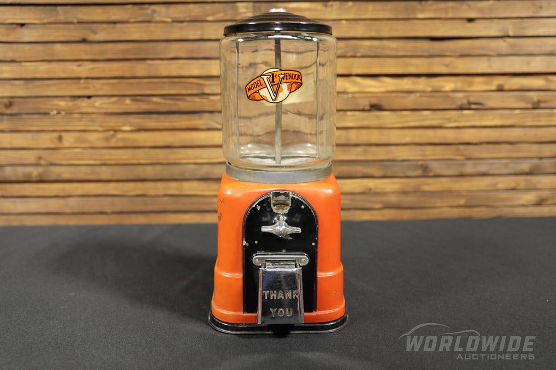 Delicious Goodies 1-cent candy vendorMar 28, 2026Advance Model D 1-cent gumball machineMar 28, 2026Columbus Vending Co. 1-cent peanut vendorMar 28, 2026Supreme Products 1-cent candy vendorMar 28, 2026Delicious Goodies 1-cent candy vendorMar 28, 2026Quality Chewing Gum 1-cent vendorMar 28, 2026Superior Confections 1-cent candy vendorMar 28, 20261940s red Silver King 5-cent hot nut vendorMar 28, 2026Vintage Coca-Cola Vendo 83 Pop Bottles Soda MachineVintage coin operated cigarette vending machine, black painted case with chrome detail, decals in6 days LeftLittle Duke 5-cent slot machineMar 28, 2026Drink Coca Cola Vendorlator VMC Model 27 Vending MachineMar 21, 2026U Select It Coin 25 Cent Operated Cigarette Machine RestoredMar 21, 2026Vintage Westinghouse Coca-Cola Machine5 days LeftSilver King Vintage 5c Breath Chaser Chlorophyll Gum Gumball MachineMar 14, 2026Antique Computing Scale, The Standard Computing Scale Co. Detroit, Mich. Used in General Stores &7 days Left