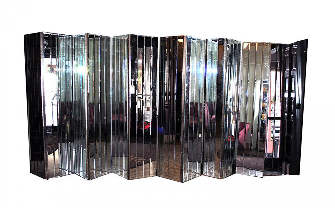 SoldA Contemporary Mirrored Eight-Panel Floor ScreenA Contemporary Mirrored Eight-Panel Floor Screen 20th Century the segmented mirrors with a mottled finish. Height 98 x width of each panel 23 inches.See Sold Price