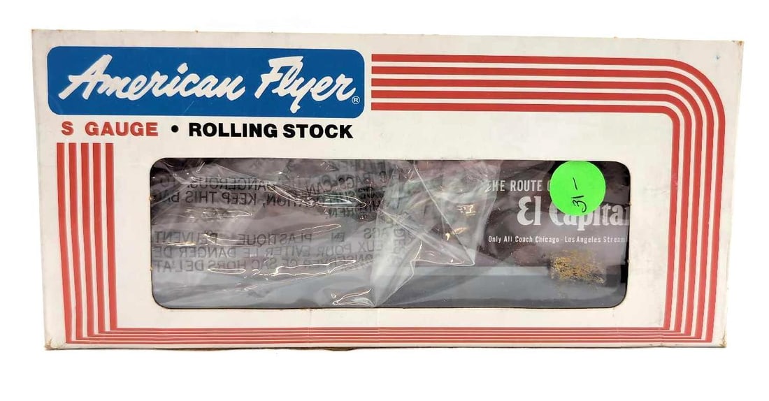 SoldModern American Flyer S Gauge 9700 Santa Fe box car in boxModern Era American Flyer S Gauge 9700 Santa Fe box car in original box, C8 very light run time. Box has price/inventory sticker, very square and very solid.See Sold Price