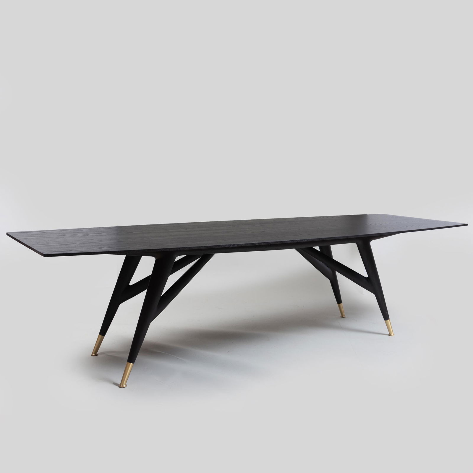 Modern Brass-Mounted Ebonized Dining Table