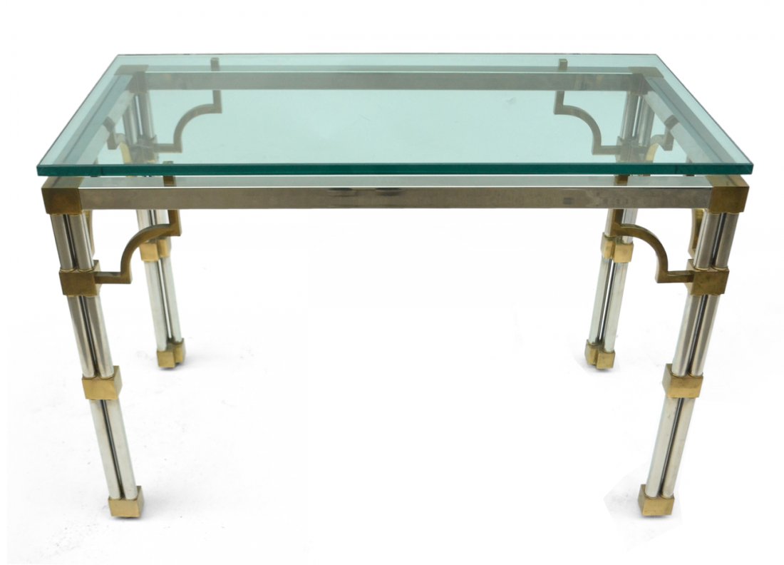 A BRASS AND IRON CONSOLE TABLE HAVING CORINTHIAN CAPITALS AND A BEVELED GLASS TOP C 1970.Feb 25, 2026Maison Jansen Style Glass Top Chrome Brass ConsoleMar 05, 2026Modern Beveled Glass Top Gilt Metal Console TableFeb 26, 2026Maison Jansen Style Chrome Glass Top Coffee TableApr 07, 2026QUALITY NICKELED BRASS COFFEE TABLE BASE WITH THICK GLASS TOP C 1965. TOP APPEARS TO HAVE AFeb 25, 2026Elegant Labarge Brass Base Console Table with Beveled Glass TopFeb 21, 2026Maison Jansen Inspired Large Dining Table Chrome Brass Glass 96"8 hrs LeftHEAVY BRONZE AND GLASS DINING TABLE HAVING HANGING RECTANGLES AND OPTIONAL MARBLE LOWER SHELF CFeb 26, 2026Paul Legeard Style Glass Top Coffee TableApr 07, 2026Vintage Modern Chromed Steel and glass side table after Milo Baughman3 days LeftWoodbridge Vintage Style Silver Leaf Metal Cocktail Table 19H x 42W x 42DFeb 25, 2026BRASS AND GLASS CONSOLE TABLE WITH FLUTED LEGS WITH CORINTHIAN CAPITALS AND X STRETCHER C 1970.Feb 25, 2026Elegant Scrolled Iron Base Glass Top Console Table 48"Feb 21, 2026Glass and Metal Dining and Console TablesFeb 24, 2026Sophisticated Square Aluminum Brass Glass Table by John VeseyFeb 25, 2026A CHROME AND GLASS SIDE TABLE, 20TH CENTURY,Feb 21, 2026