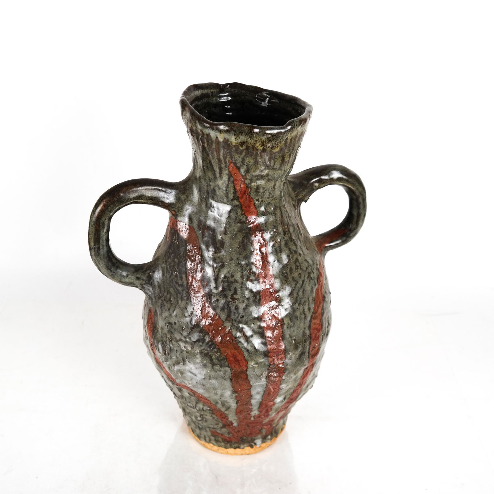 SoldLarge Mid-Century Modern Scheurich West German Pottery Pitcher, Floor VaseLarge Mid-Century Modern Scheurich West German Ceramic Pitcher. Fabulous pitcher or handled floor vase with brown mottled glaze, decorated with brown swirls with red dots in the center, and glazed inSee Sold Price