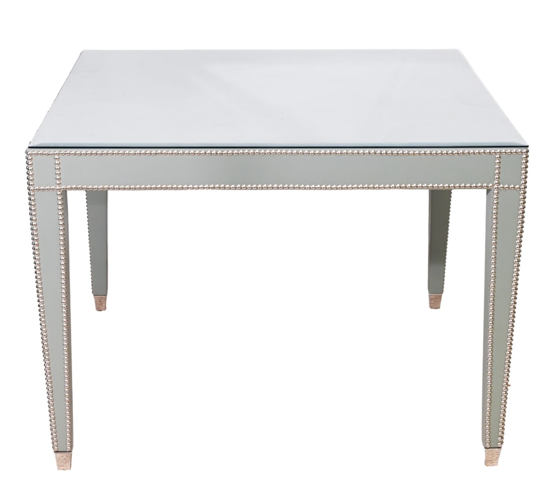 SoldModern Custom Leather Wrapped Square Tea TableModern Custom Leather Wrapped Square Tea Table with Nail Head Trim and Protective Glass Top Cover.Measures 30 inches x 42 inches x 42 inches.See Sold Price