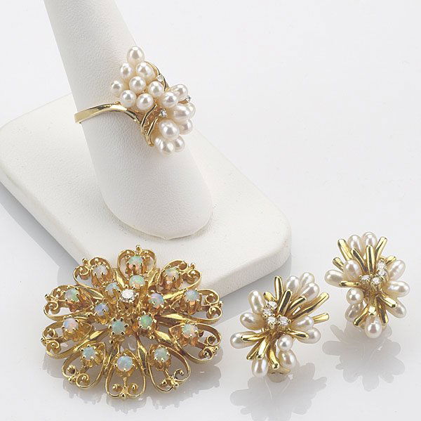 14K YELLOW GOLD RING WITH DIAMONDS AND CLUSTERED PEARLS SIZE: 6.75 7.3GModern Jewelry4.4(204)$1,3255 days Left