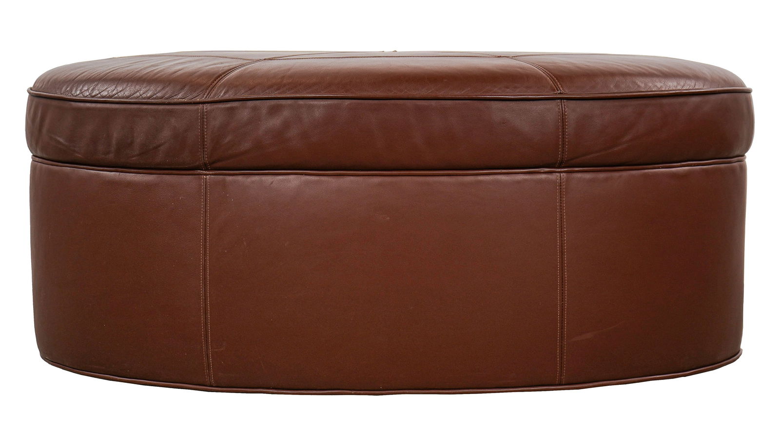 SoldLarge Modern Brown Leather OttomanLarge Modern Brown Leather Ottoman . 19" H 36 1/2" W 25" D ALL DESCRIPTIONS AND ANY CONDITION STATEMENT GIVEN BY LANGSTON AUCTION GALLERY ARE STRICTLY OPINIONS AND LANGSTON'S SHALL HAVE NO RESPONSIBILSee Sold Price