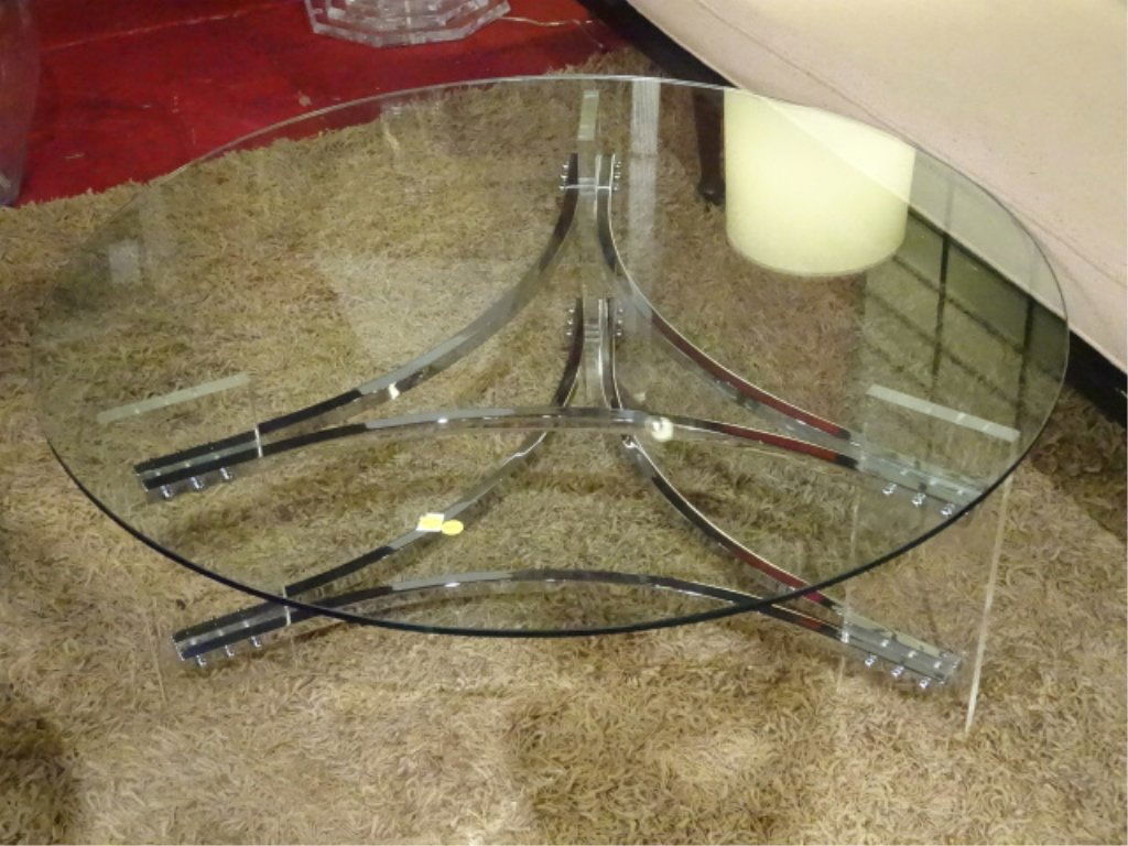 MODERN LUCITE AND CHROME COFFEE TABLE, CHROME