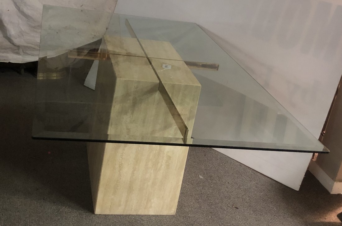 Matteo Grassi Modern Italian Travertine Double Pedestal Glass Top Dining Table, Circa 1970sLiberty & 33rd Furniture Co.4.4(18)$500Mar 31, 2026