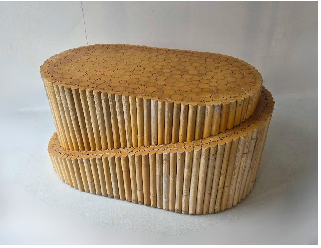 MODERN OVAL BAMBOO COFFEE TABLE IN THE MANNER OF MCGUIRE AND PAUL FRANKL