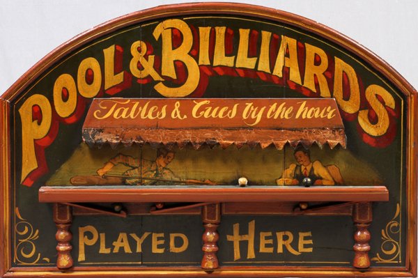 ANTIQUE BRUNSWICK BALKE COLLENDER RACK7 days LeftRARE vintage Ranger Steel player tin toy part6 days LeftARTS & CRAFTS LEADED GLASS BILLIARDS CHANDELIER7 days LeftWillie Mosconi signed photographMay 17, 2026Maitland Smith Mahogany Billiards Rack Model 1330-454 Distressed FinishApr 23, 202614" Men Playing Billiards Plaque w Copper FrameJun 06, 2026GERMAN VOLKSTEDT PORCELAIN DRESDEN-STYLE HAND-PAINTED BILLIARDS FIGURAL GROUPApr 23, 2026Vintage Modern Shoe Repairing Double Sided Sign1 day LeftMid-Century Modern Brass Peace Sign Sculpture by NoirApr 26, 2026Mid-Century Modern Brass Peace Sign Sculpture by Noir2 days LeftRare Men Playing Billiards Stein wFancy Pewter LidJun 06, 2026WALLACE NUTTING (1861-1941) Two WorksApr 25, 2026Taxidermy Frog Band & Playing BilliardsApr 25, 2026DAVID HOCKNEY Pool and Steps 33.5" x 24.5" Poster 2021 Pop Art Red Blue GreenApr 23, 2026Van Roy Wieze Enameled Iron Sign by R. Van Doren2 days LeftWALLACE NUTTING (1861-1941) Two WorksApr 25, 2026