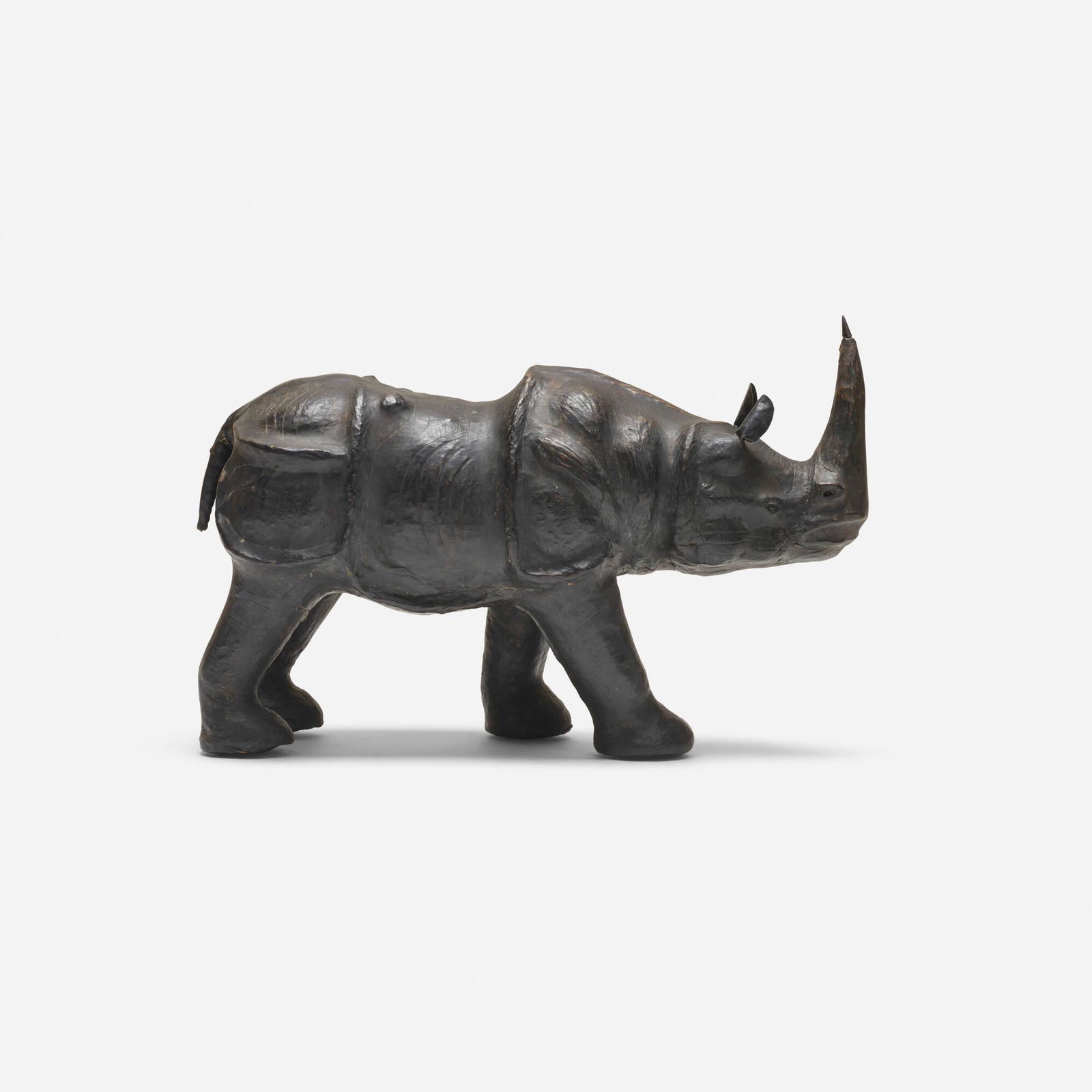 LARGE LEATHER-CLAD ANIMAL SCULPTURE, RHINOCEROS, 21"L