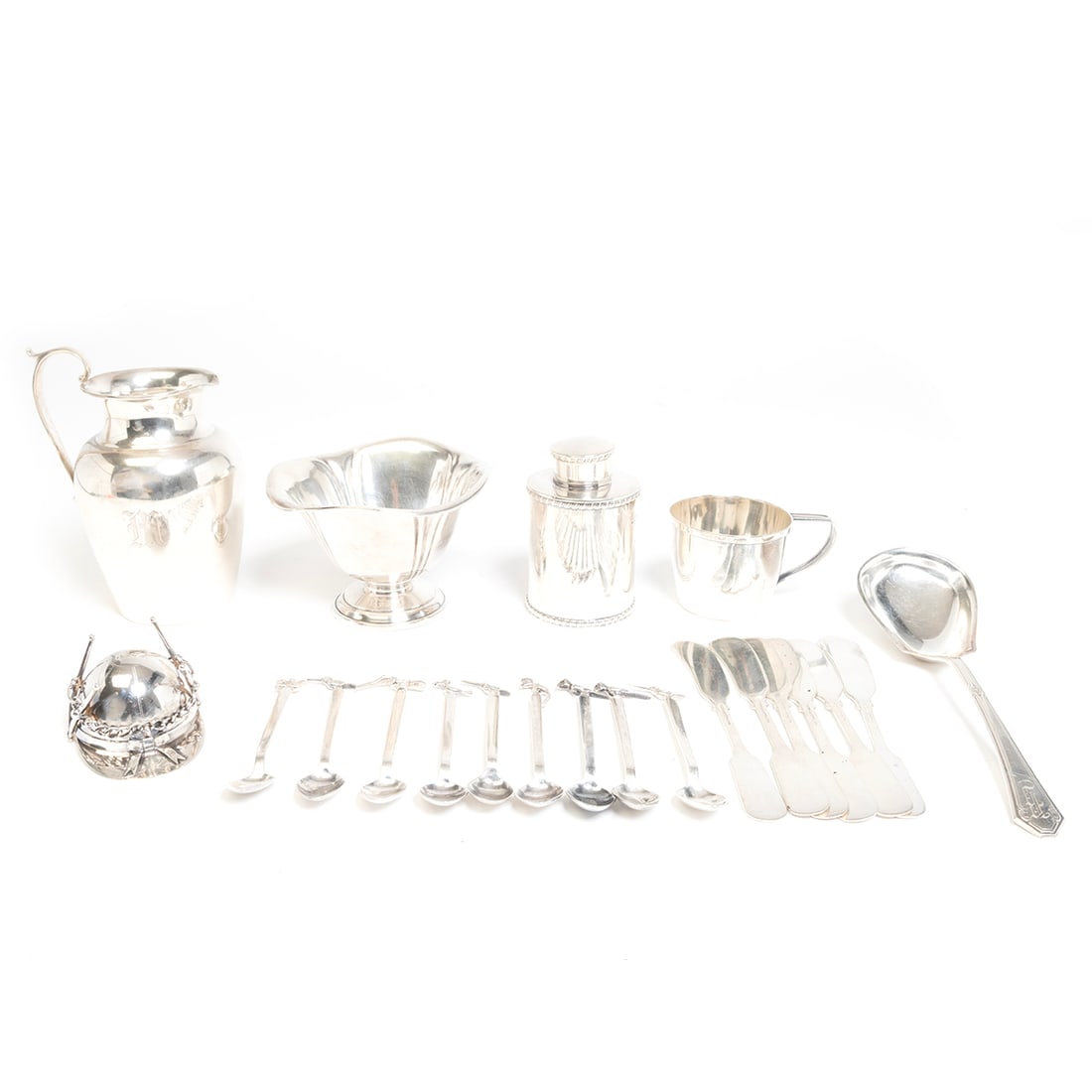 Large Lot Sterling Silver, incl; Nut Dishes, Porringers, Gravy/Sauce Boat, Flatware, S & P,13 hrs LeftSilverplate and Sterling SilverMar 20, 2026A Group of American Silver Table ArticlesMar 17, 2026Group of Georgian Sterling Silver Tea Articles6 days LeftA Group of Chinese Export Silver Articles 19th-20th CenturyMar 24, 2026Twelve American and English Silver Table Articles3 days LeftSix-piece Gorham 'Medallion' Silverplate Coffee and Tea Service and Six Coin Silver Tablespoons,William Adams, Etc. Silver Plate Tableware, 8 Pcs.2 days LeftReed & Barton, Etc. Silver Plate Tableware, 10 Pcs2 days LeftTwenty-Nine Pieces of British and American Antique Sterling Tableware, 19th/20th c., App. TotalMar 27, 2026Collection of Sterling Silver Hostess Wares1 day Left31 Sterling, English Silver and Silver Plate Table Items2 days LeftEight American Sterling Silver Serving Utensils3 days LeftGroup British Sterling Silver Flatware & Utensils3 days LeftSix English & American Silver Table Articles3 days LeftCollection Miscellaneous Sterling Silver, Primarily Spoons3 days Left