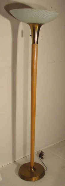 SoldModern torchiere floor lampModern torchiere floor lamp USA, 1950s brass, plated metal, walnut unmarked 13 1/4"dia x 62 3/4"hSee Sold Price