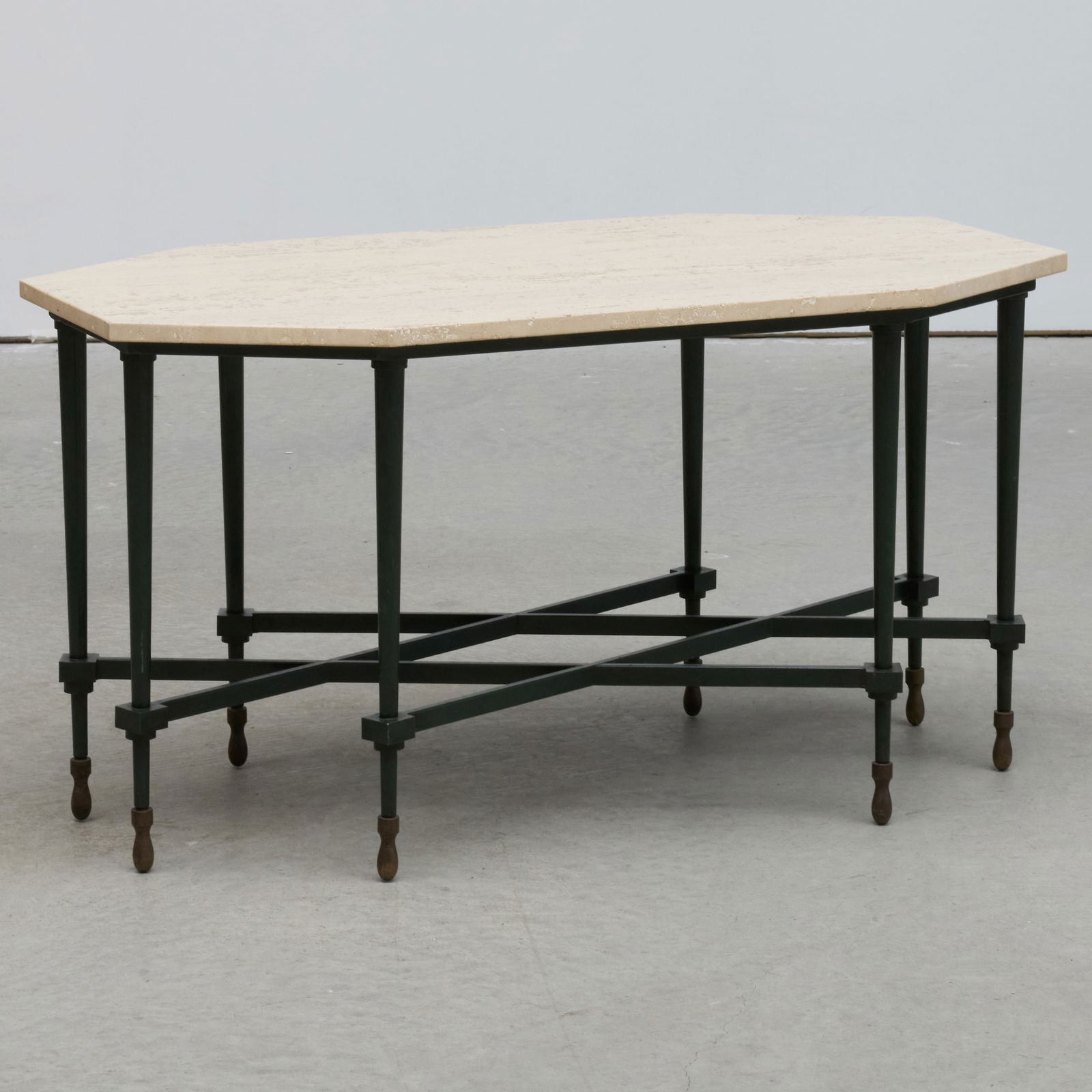AN ITALIAN CUSTOM MADE STEEL TABLE WITH GILT METAL DECORATION AND A TRAVERTINE TOP.Kamelot Auctions4.4(345)$5005 days Left