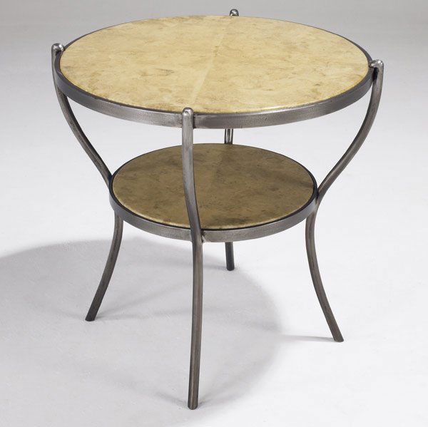 Steel & Brass Marble Top Gueridon TableFeb 26, 2026Round dining table with a black wrought iron base and wooden, top.4 days LeftElegant Wrought Iron Side Table by Woodard with Weave Top3 days LeftMaison Jansen Style Glass Top Gueridon TableApr 07, 2026Chic Bonham Round Iron Side Table with Gold Accents by Butler1 day LeftVintage Wooden & Metal Round Dining Table1 day LeftFrench Bistro Style Wrought Iron Table by Jonathan Charles2 days LeftVintage Italian Gold Finish Iron Base Round Glass Top TableMar 01, 2026TABLE, WOOD, PARCHMENT AND MARBLE STRUCTUREFeb 25, 2026Wrought-Iron high table with Glass Top4 days LeftMaitland Smith Round Marble Top Iron Base TableNeoclassical Style Bronze and Stone Gueridon2 days LeftLillian August Hollywood Regency 2 Tier Mirrored TableFeb 28, 2026Maitland Smith 8128-30 Regency Lamp Table with Inlay and Brass Edge5 days LeftFrench Modern Bronze Marble Gueridon Bistro Table 1920sMar 01, 2026Brass & Iron Table, Camels and Figures4 days Left