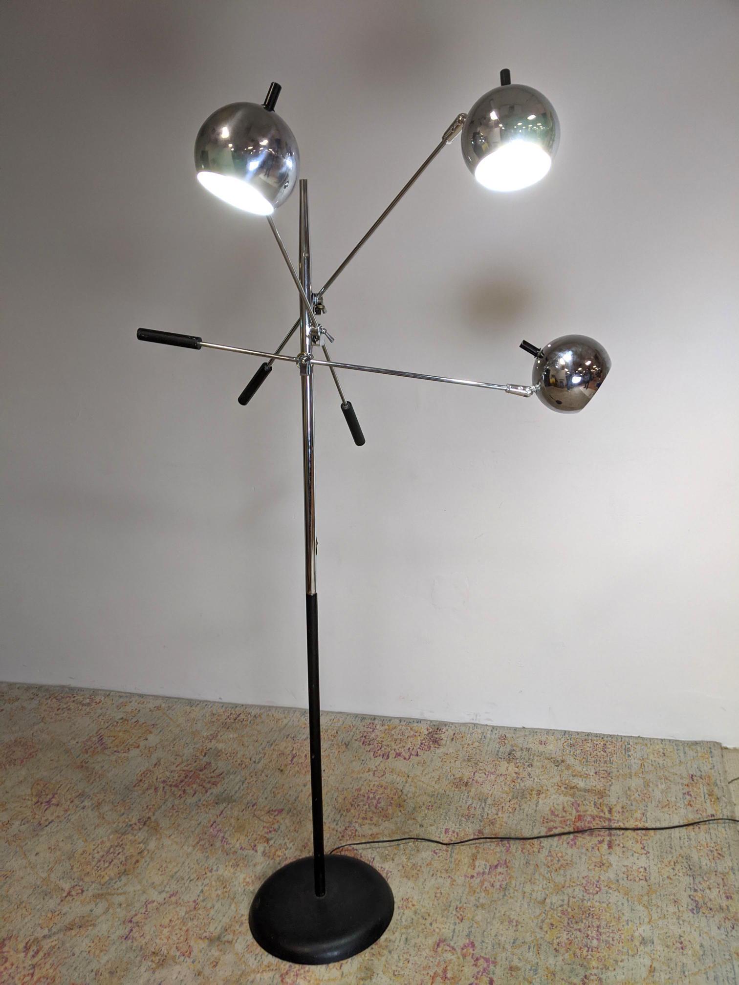 Modernist Floor Lamp. Chrome stem with three adjustable