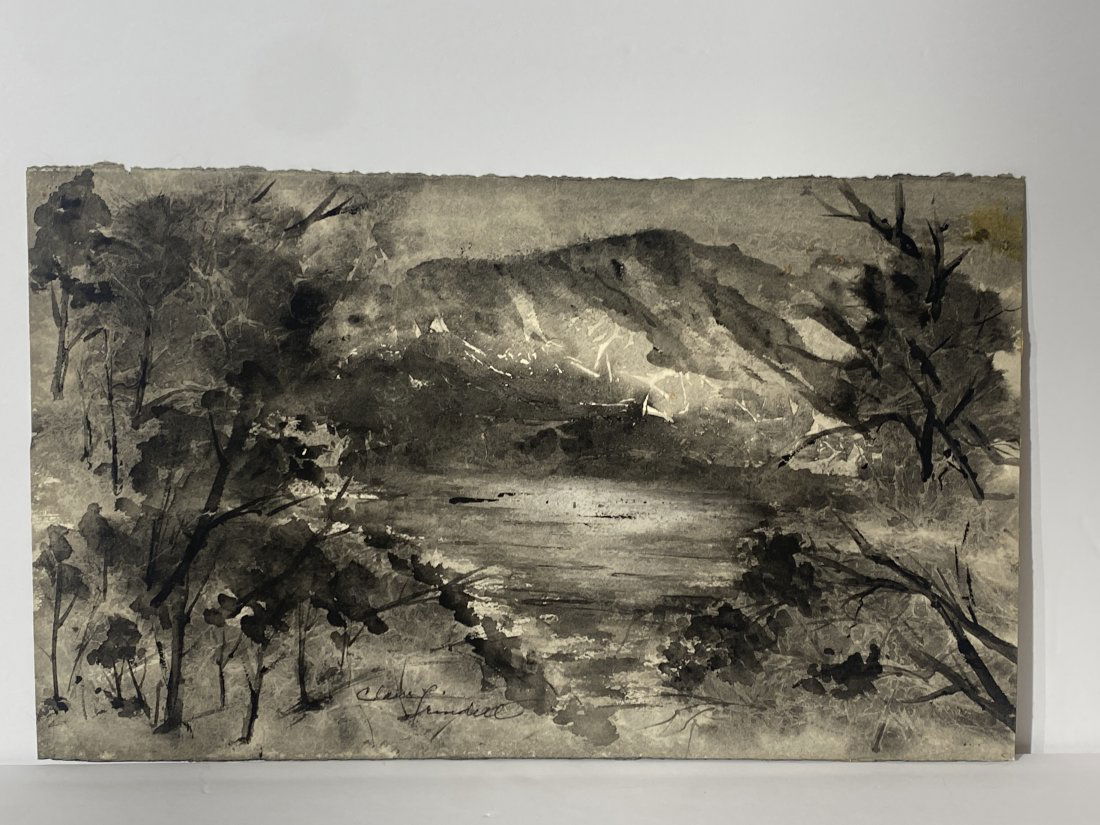 Modernist landscape watercolor signed