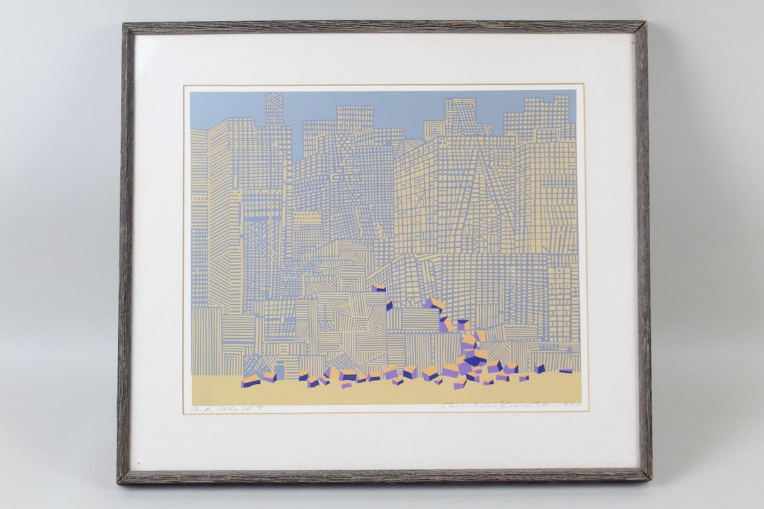 Modernist Screenprint "City" Cityscape by Risaburo Kimura, 1971