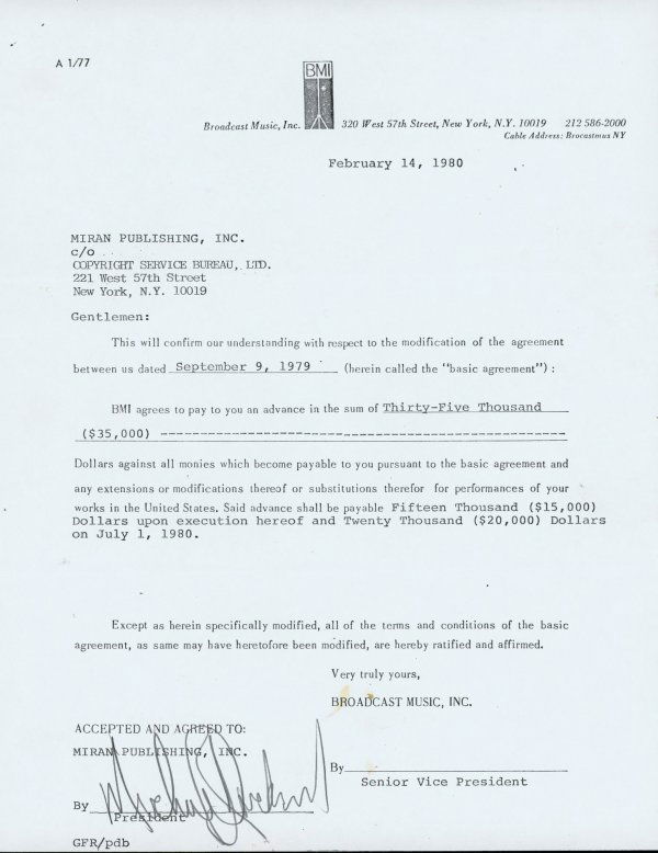 Modification of Agreement Between Michael Jackson