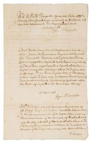 MOMPESSON, Roger. Manuscript qualification oath, s