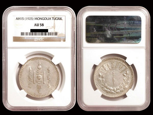 MONGOLIA 1925 One Tugrik Silver, NGC AU58