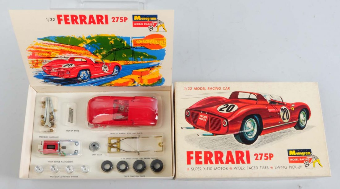 SoldMonogram 1/24 scale slot car kit Ferrari 275p built in original boxMonogram 1/24 scale slot car kit Ferrari 275p built in original box , car is in very good condition, there is glue visible around the glass edges, it has been tested and runs, the box is complete, itSee Sold Price
