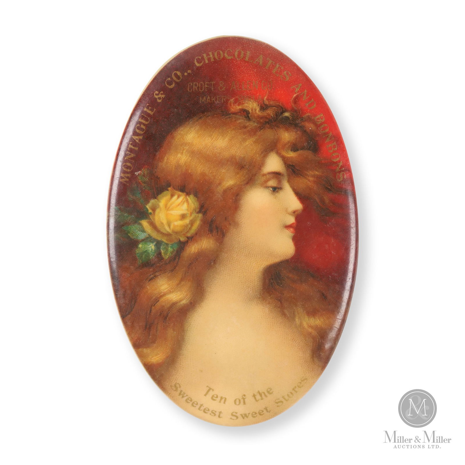 Montague Chocolates Celluloid Pocket Mirror