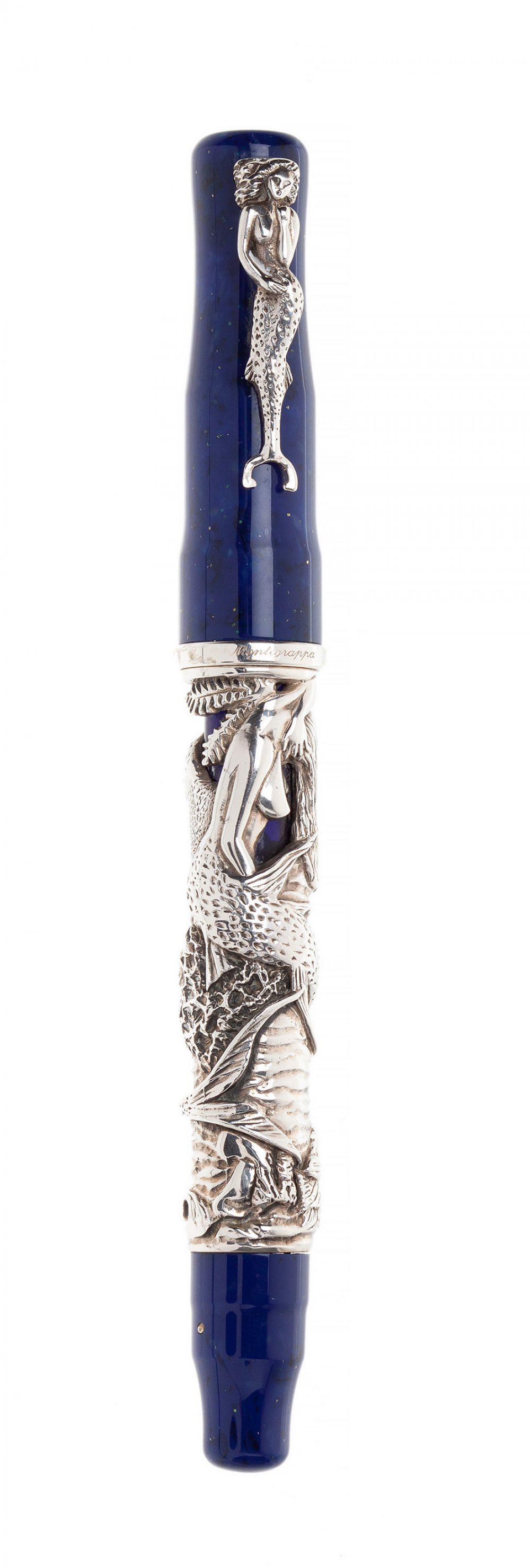 MONTEGRAPPA “LA SIRENA†FOUNTAIN PEN, LIMITED EDITION. Sterling silver and blue resin cap.