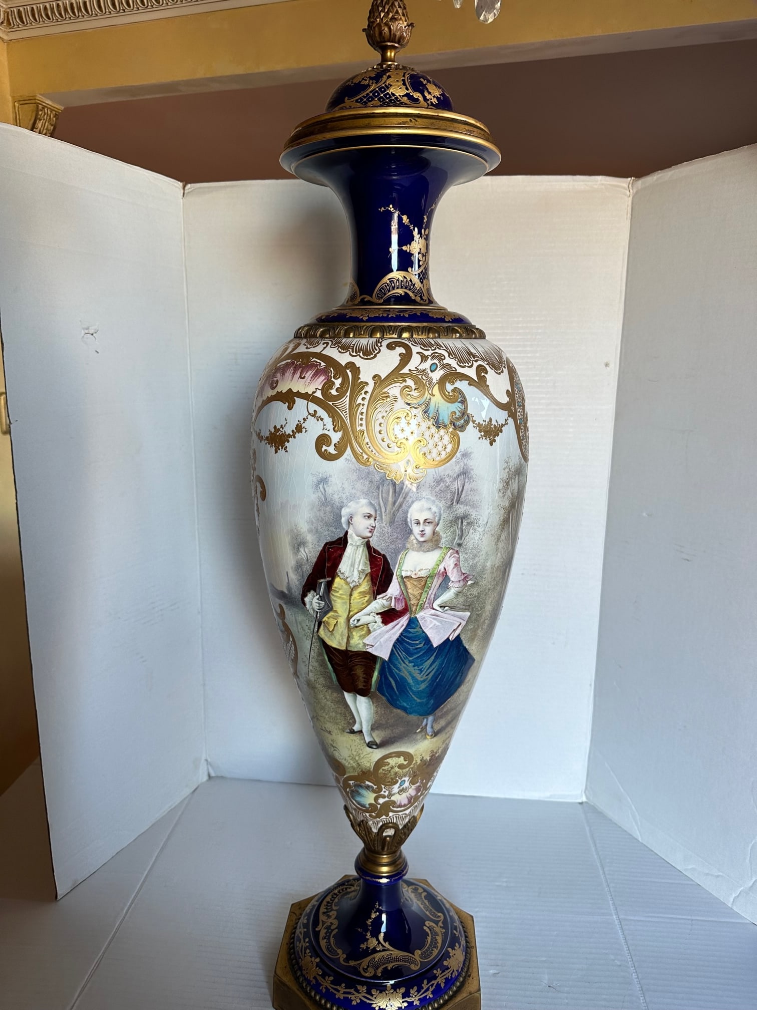 MONUMENTAL ORMOLU-MOUNTED SEVRES PORCELAIN COBALT-BLUE GROUND VASE AND COVER