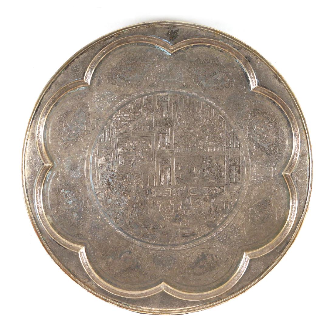 MONUMENTAL PERSIAN ENGRAVED SILVER TRAY