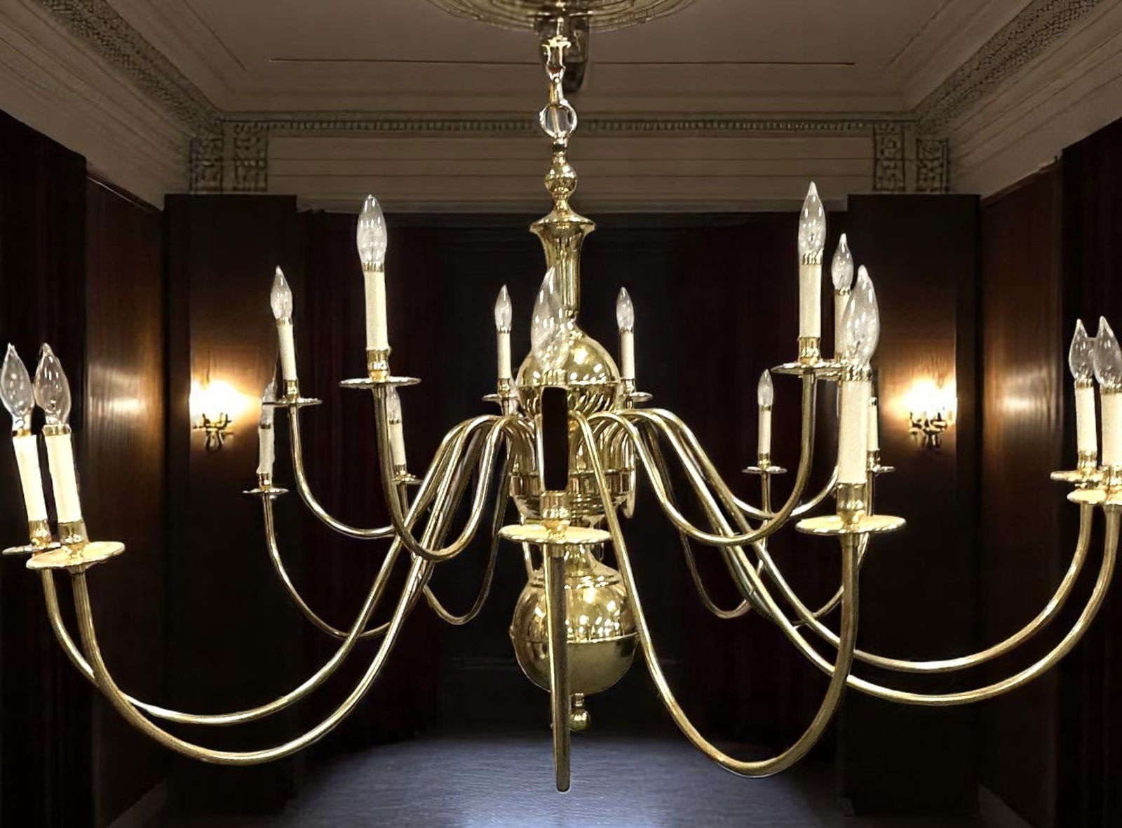 MONUMENTAL VINTAGE SOLID BRASS 18 ARM CHANDELIER