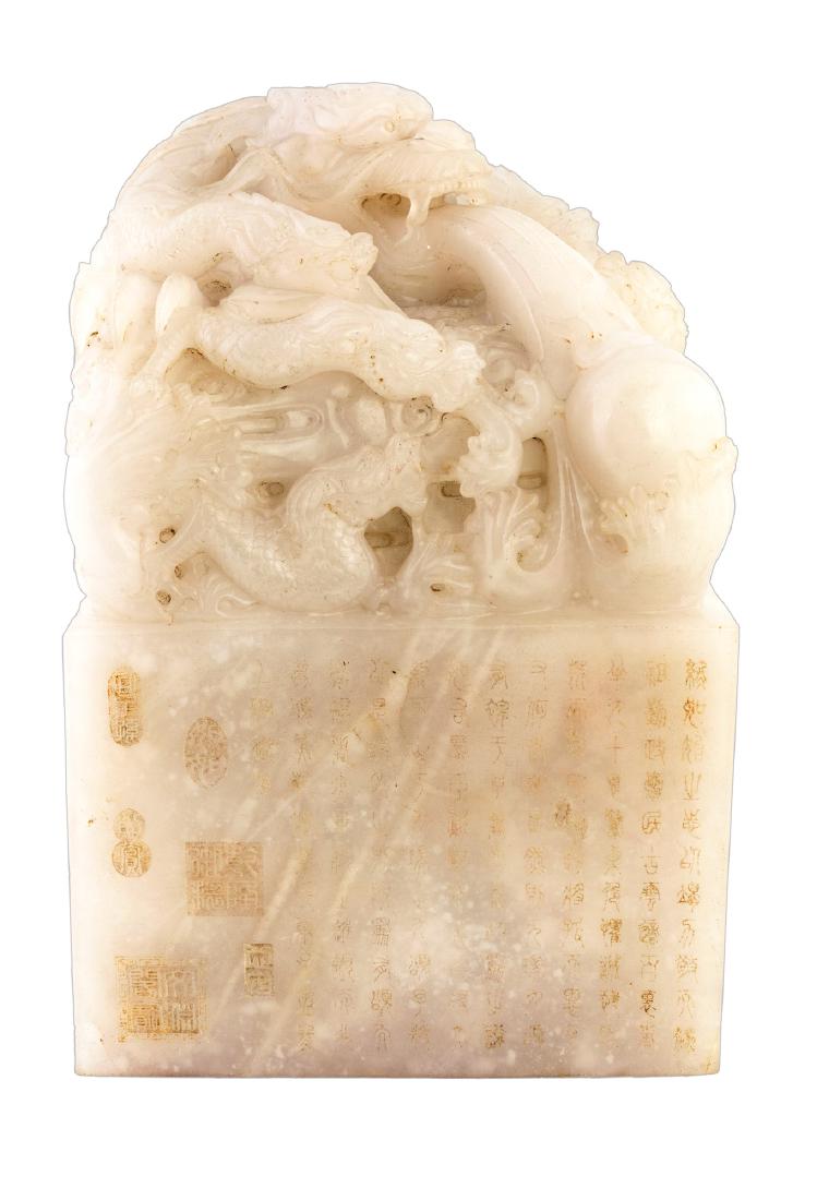 A FINE AND RARE CARVED AND INSCRIBED WHITE JADE DRAGON SEAL3 days LeftA WHITE AND RUSSET JADE 'LION' WEIGHT, HAN DYNASTYMar 12, 2026Hetian Jade Young Lion and Grand Lion OrnamentMar 16, 2026A CARVED WHITE JADE BELTHOOK3 days LeftChinese Russet Jade Sculpture RamMar 20, 2026A CARVED WHITE JADE CONGMar 22, 2026A RARE WHITE AND BLACK JADE SEAL WITH A DRAGON-TORTOISE (XUANWU), MING DYNASTYMar 12, 2026A beautiful Hetian white jade Chang'e moon mountain ornamentMar 22, 2026An exquisite white jade lion pattern plateMar 29, 2026A Chinese Jade Dragon Seal, Ancient Style, 20th Century, 43YC4 days LeftAn Exquisite White Jade Cover with Gold Beast-Face Pattern Chi-Dragon Pattern TokenMar 13, 2026A Chinese Hetian Jade Cabbage Carving, 20th Century, 13YA2 days LeftA beautiful piece of second-hand Hetian jade seed material all the way to the top of the furnace3 days LeftAn Exquisite White Jade Beast-Handled Tripod Vase And Cover With Poem InscriptionsMar 18, 2026A Chinese Hetian Jade Carving of an Insect and Flowering Plant, 20th Century, 50FC4 days LeftA piece of Hetian white jade Chang'e running to the moon Shanzi ornament3 days Left
