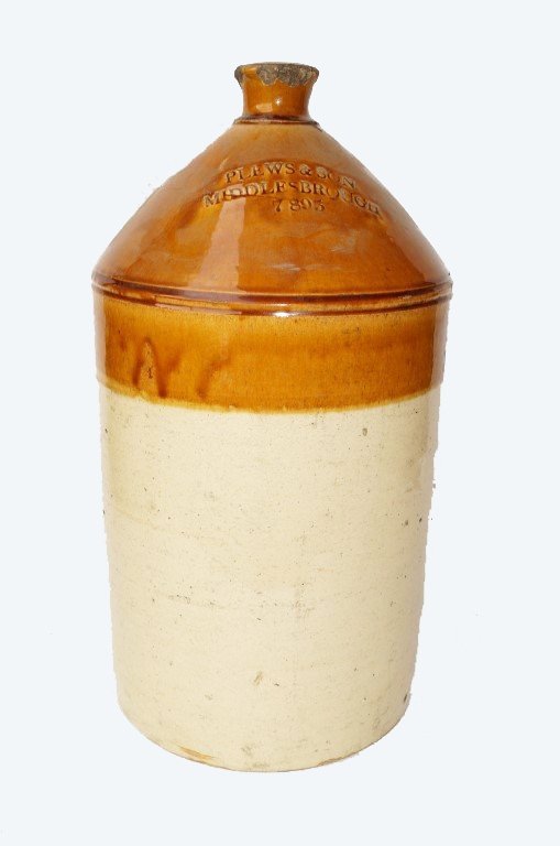 Moon-shine Glazed Crock signed Plews & Son