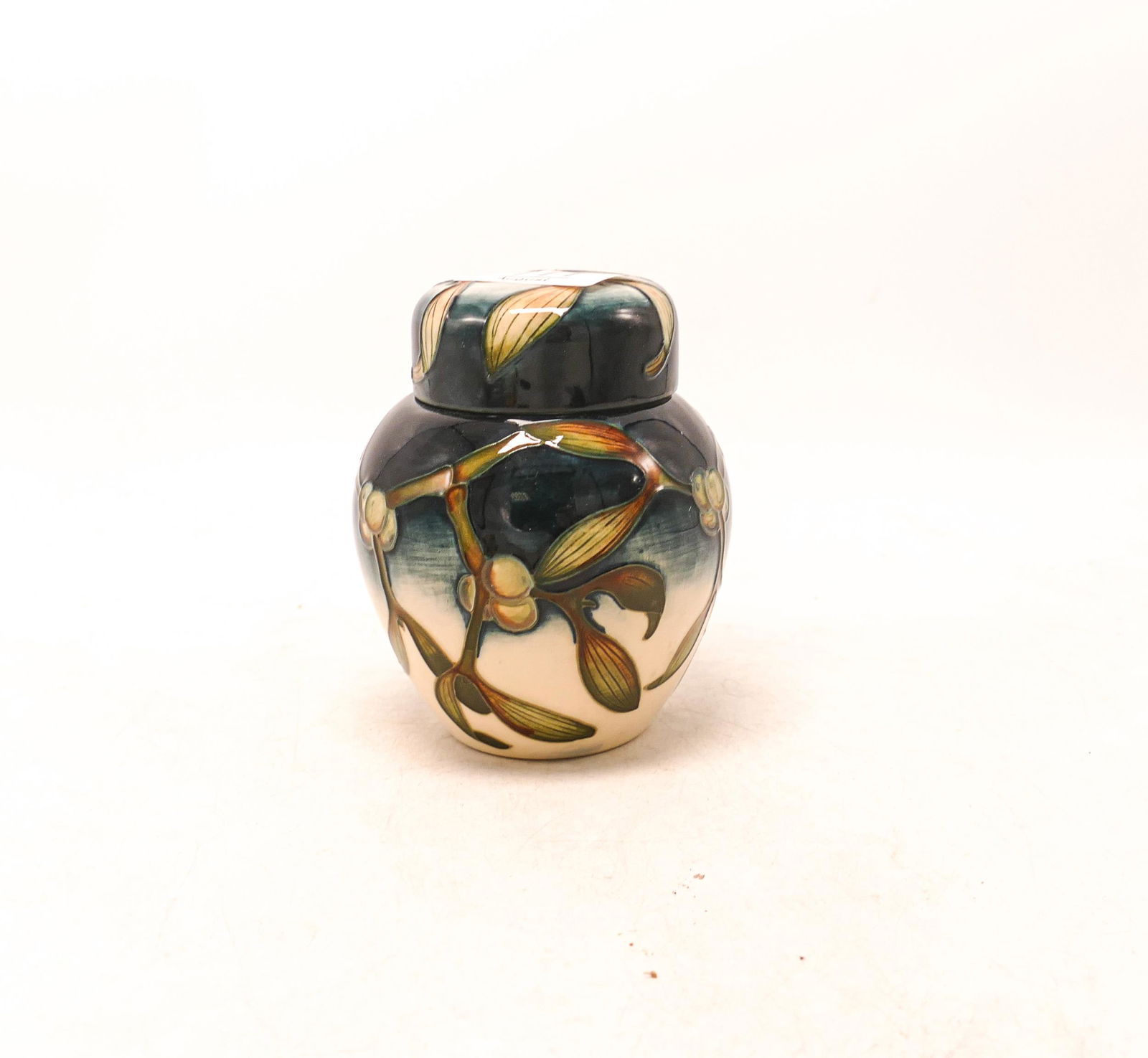 Moorcroft Mistletoe ginger jar. Height 11cm, dated 2001. Boxed
