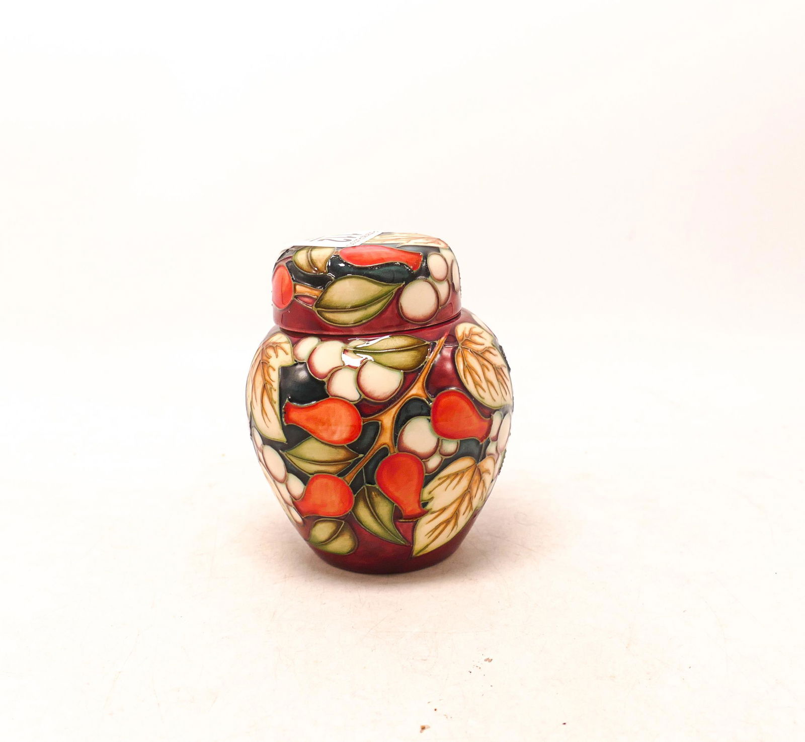Moorcroft Winter Harvest ginger jar . Height 11cm, dated 2003. Boxed