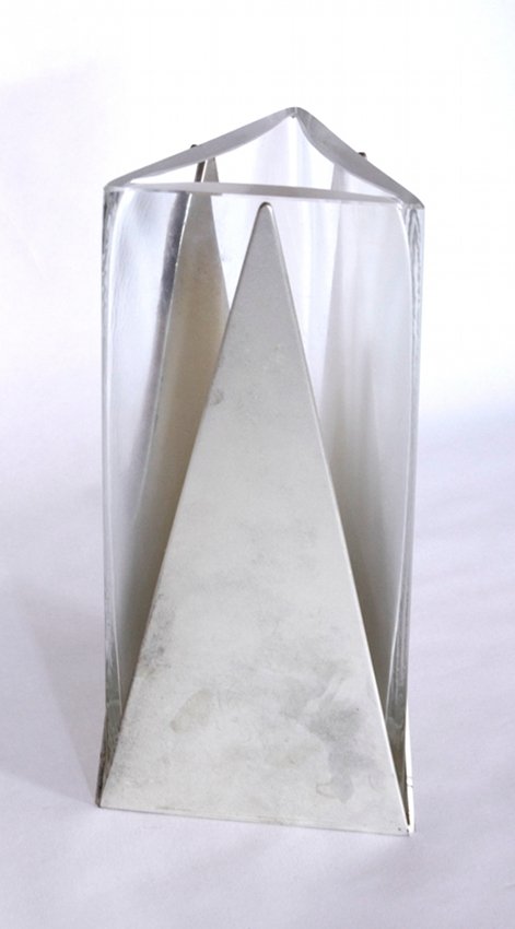 LINO SABATTINI "Giselle" vase and "Cardinale" vase. 2pc Chromed Modernist Vases. One marked SABATTINLINO SABATTINI "Giselle" vase and "Cardinale" vase. 2pc Chromed Modernist Vases. One marked SABATTINI. One marked GALLIA; Prod. Christofle. Dimensions: Height: 10 inches, Width: 2 inches, Depth: 1 inc