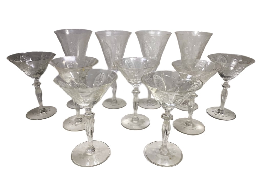 Morgantown Leaf Engraved Fluted Stem Glasses 12pcs
