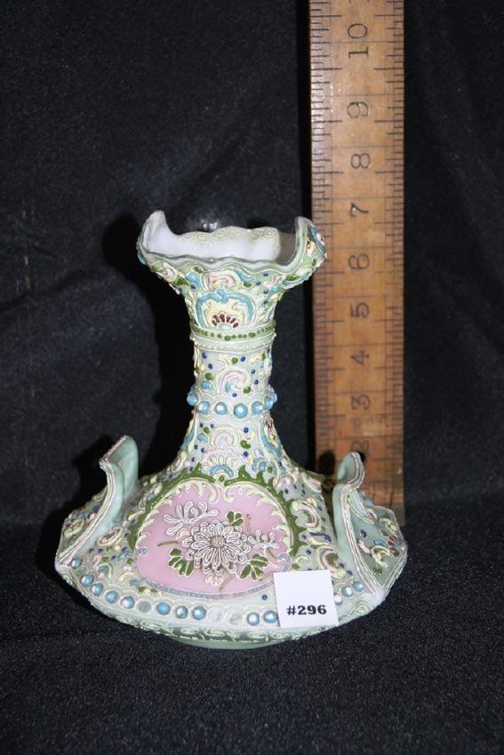 Moriage vase having a celadon blue glaze with applied