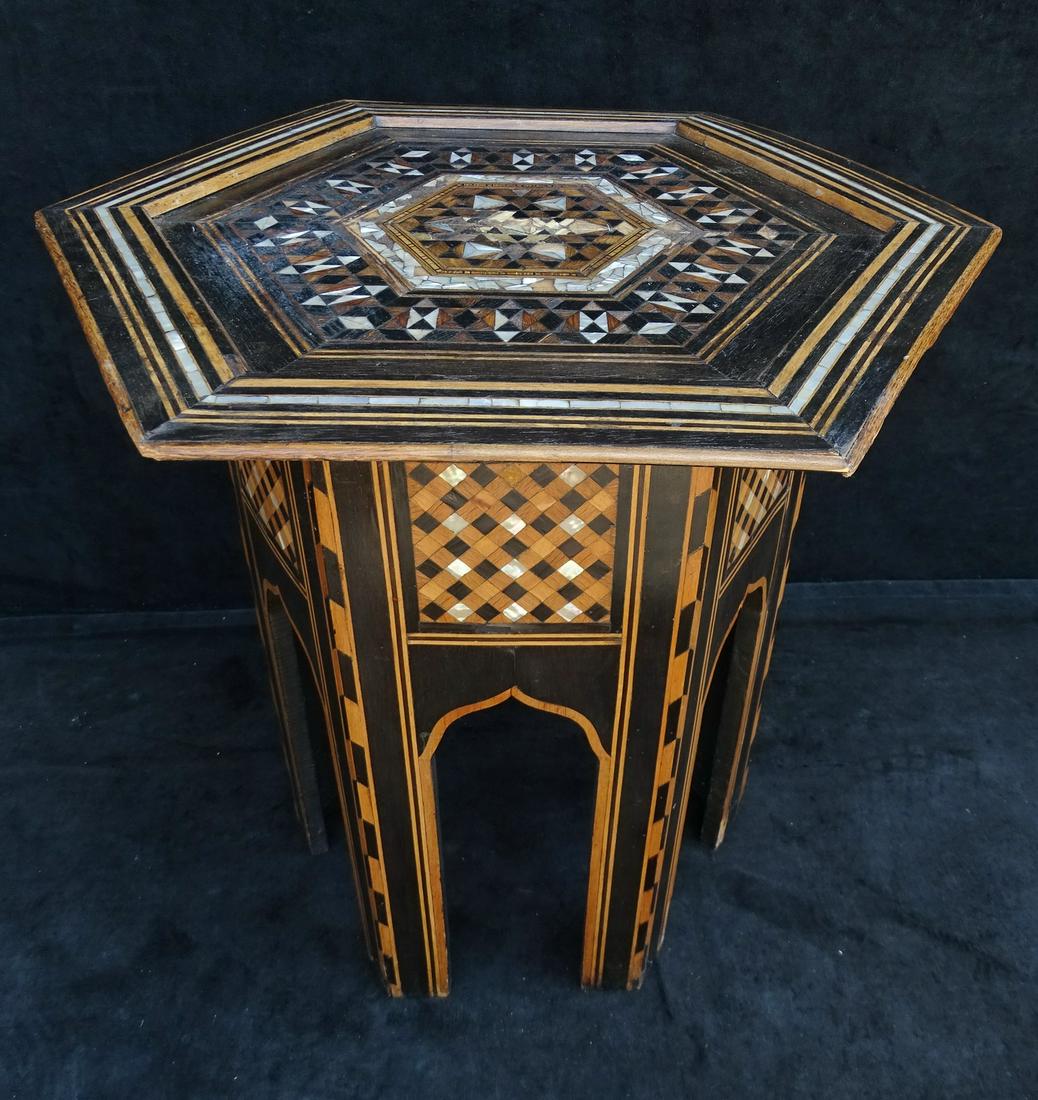 AN INDO-MOORISH YEW AND MULBERRY HEXAGONAL OCCASIONAL TABLE, EARLY 20TH CENTURYDreweatts Donnington Priory4.4(34)£240