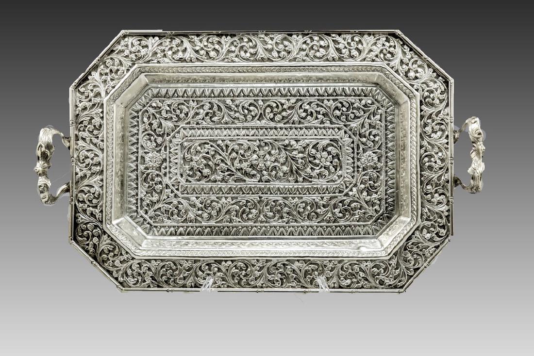 Persian Silver Engraved Figural Tray