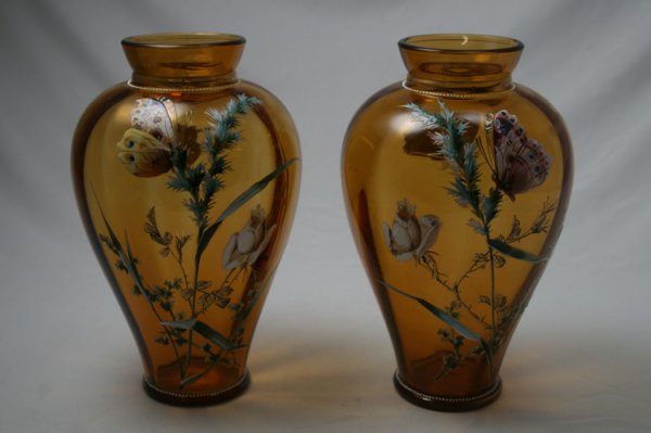 Moser Amber Enameled Vases