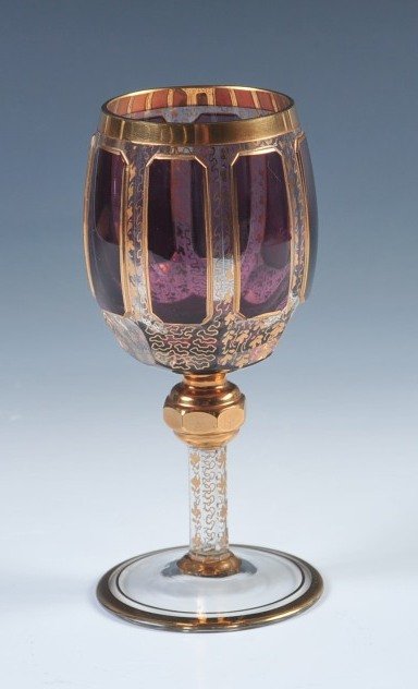 A FINE GILT AND ENAMELLED MOSER WINE GLASS