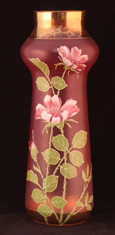 MOSER Cranberry and Gold Vase, Signed