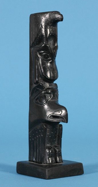 Moses Ingrams Argillite Totem with Carved Eagle, Fr