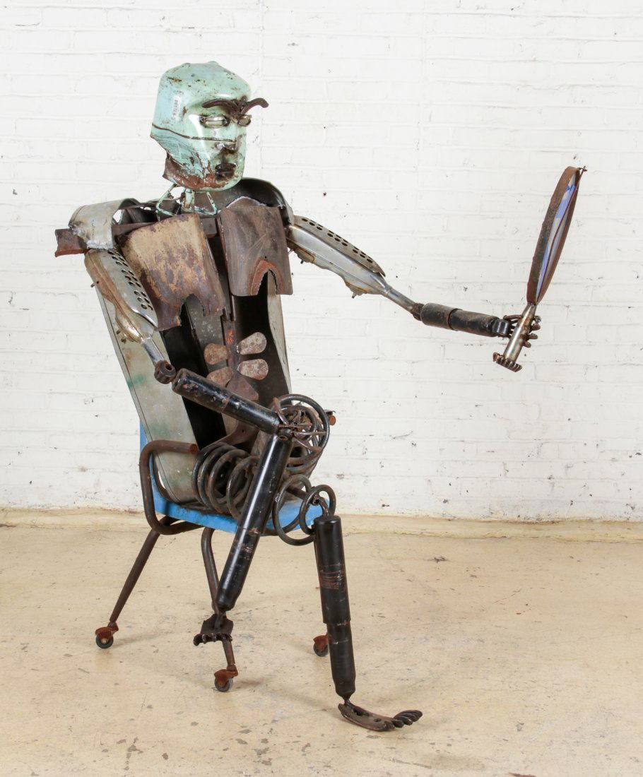 Motorcycle Man Folk Art Found Object Sculpture