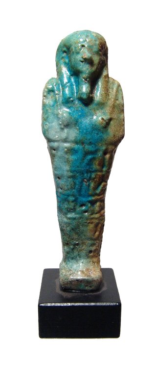 Mottled blue Egyptian faience ushabti