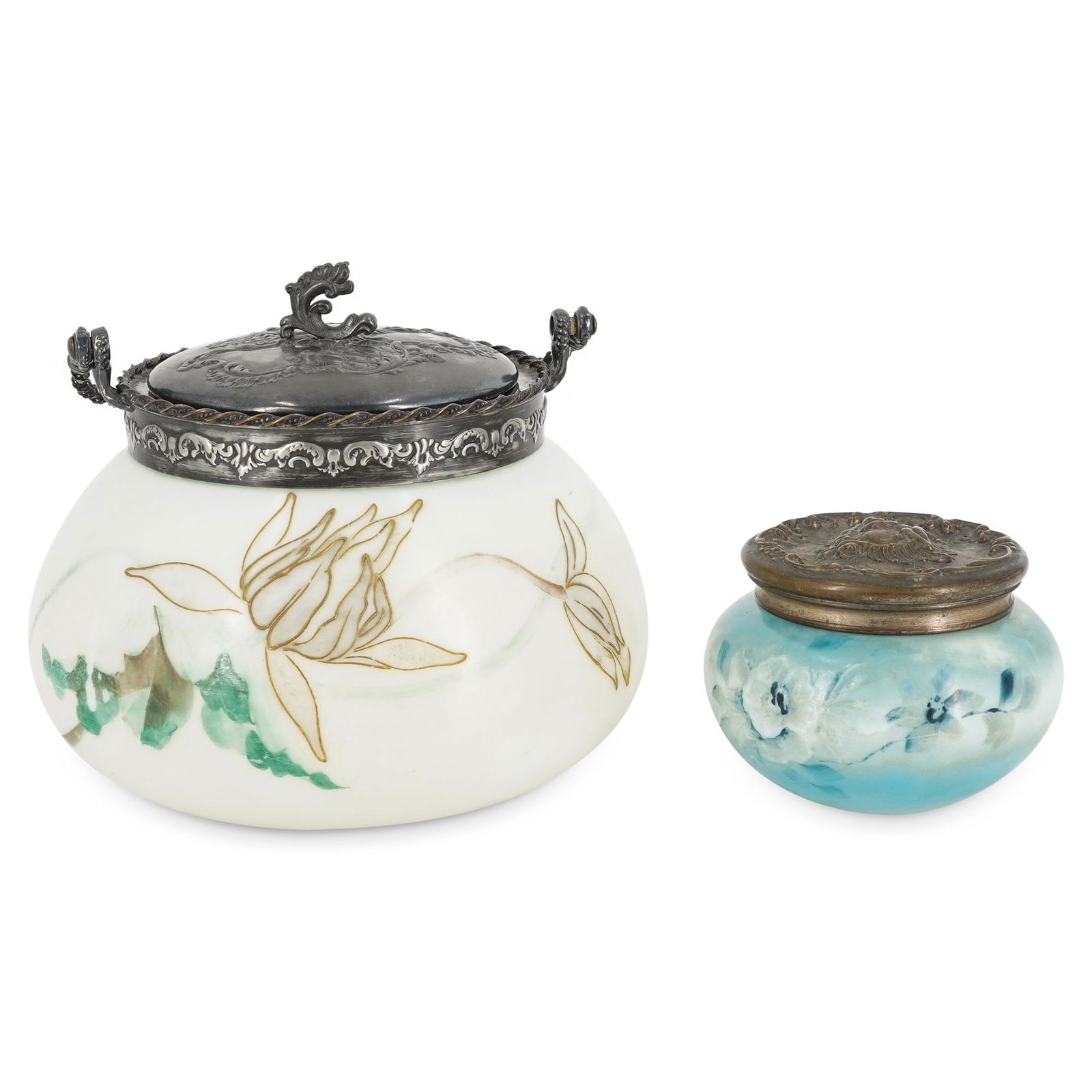 BRITISH HAND-PAINTED CERAMIC GAUDY-STYLE FLORAL TABLE ARTICLES, LOT OF TWO6 days Left2 pc Lot Victorian Glass Pairpoint Mt. Washington Glass Biscuit Jars2 days LeftTwo Clear Glass Containers Koeze Wexford Canister Crystal de Castro Bowl2 days Left3 pc Lot Wavecrest Victorian Glass Dresser Boxes & Biscuit Jar Mirrored Floral and Dancing Ladies2 days LeftAntique Mt. Washington Glass Crown Milano Melon Shaped Biscuit Jar With Original Paper Label1 day LeftAntique Mt. Washington Glass Floral Biscuit Jar1 day LeftAntique Mt. Washington Glass Floral Biscuit Jar1 day LeftPair Maison Jansen Style Porcelaine de Paris Covered Urns Gilt Feather MotifAntique Mt. Washington Glass Floral Biscuit Jar1 day LeftThree Faces Biscuit Jar and Pressed Glass Lidded Pedestal Bowl (2)Mar 28, 20263 Vintage Charleton Perfume + Vanity Bottles, JarsMar 08, 20263 Wavecrest Glass Dresser BoxesMar 14, 2026Biscuit Jar, Unmarked Mt. WashingtonMar 21, 2026A Pair of Chinese Porcelain Jars for the Straits or Peranakan Market5 days LeftChinese Enamel Decorated Objects Grouping.Mar 08, 2026Chinese Blue and White Porcelain Covered Jars, 5May 07, 2026